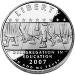 The Little Rock Nine coin honors the brave African-American students who fought desegregation. In 1957,they braved protestors and the National Guard to be the first blacks to attend Little Rock Central High.